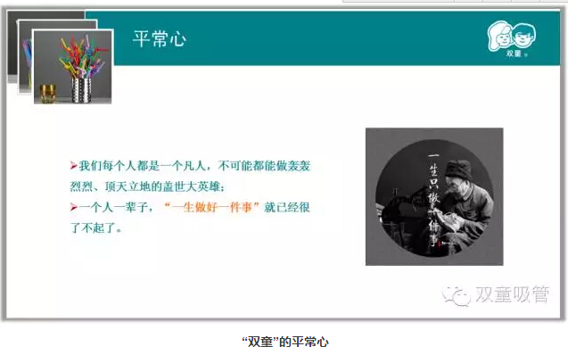 在國內(nèi),付守永先生是著名的“工匠精神第一人”,他寫就了《工匠精神》、《路演大師》等暢銷著作,為企業(yè)界帶來了實(shí)實(shí)在在的經(jīng)營指導(dǎo)和管理方略。在付守永先生的著作《工匠精神 成為一流匠人的十二條工作哲學(xué)》的開頭,就是他邀請“雙童”樓仲平為此書寫的序文!看來付守永先生對(duì)“雙童”的”工匠精神“也相當(dāng)認(rèn)可。想看看樓仲平是如何詮釋”雙童“匠心的嗎?下面妞帶大家來看看!