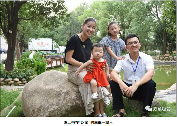 在收獲事業(yè)成功的同時,李二橋也在“雙童”收獲了圓滿愛情,擁有自己幸福家庭,老婆和女兒陪伴左右。無數(shù)次,有人問同一個問題:年輕人大多都沒有定性,總是喜歡換工作來改變環(huán)境,為什么你可以一直呆在“雙童”而不動搖?
