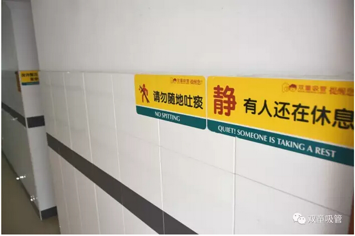 除了優(yōu)質(zhì)硬件的配備之外,走在寢室通道上,你會(huì)發(fā)現(xiàn)墻面上隨處可見的文化標(biāo)語(yǔ),注目細(xì)讀下發(fā)現(xiàn)沒有“嚴(yán)禁”和“禁止”之類的用語(yǔ),有的都是善意的提醒和尊重的宣導(dǎo),以此引導(dǎo)員工們養(yǎng)成好的行為習(xí)慣,形成良好的宿舍氛圍!