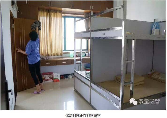 建好后的“雙童”寢室,共有300多間寢室,能夠同時(shí)容納1000人居住,有著如鏡面般的寢室地面和通道、潔白的瓷磚、配置齊全的各類生活設(shè)施……