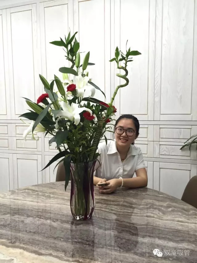 接待桌的鮮花吸引了吸管妞