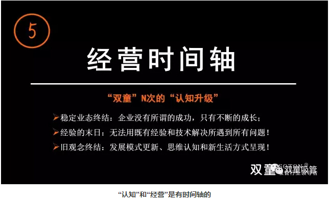 樓仲平也用“雙童”的發(fā)展史告訴大家經(jīng)營(yíng)也是有時(shí)間軸的,會(huì)遇到各種瓶頸和每個(gè)階段的“天花板”。企業(yè)沒(méi)有所謂的成功,只有不斷的成長(zhǎng),我們無(wú)法用既有經(jīng)驗(yàn)和技術(shù)解決所遇到所有問(wèn)題!