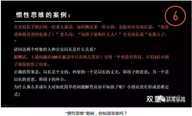 據(jù)測(cè)試,上述問(wèn)題在100名被試中只有兩人答對(duì)!父母一個(gè)也沒(méi)有答對(duì),只有2位小孩子卻很快答了出來(lái)。