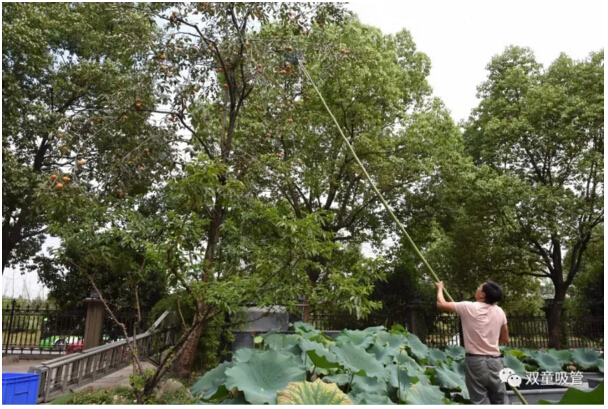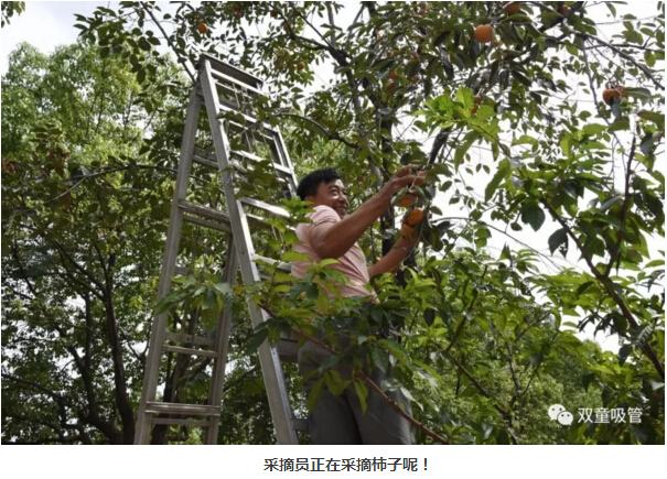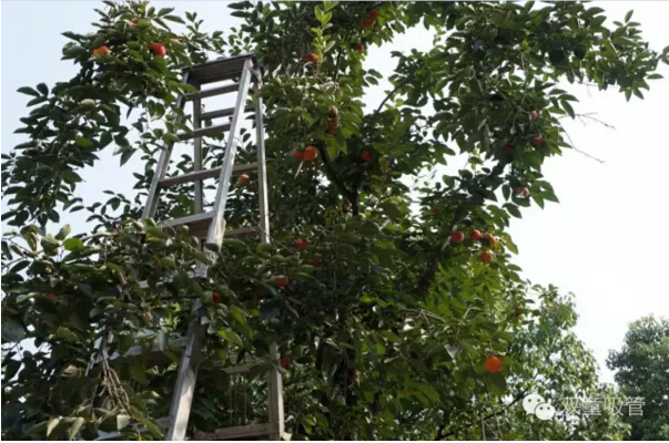 搬來梯子,準備好箱子,采摘正式開始!瞧我們的采摘員“掛”在柿子樹上那叫一樂呵,還揚言說“別急,等我吃飽了再幫你們摘!”