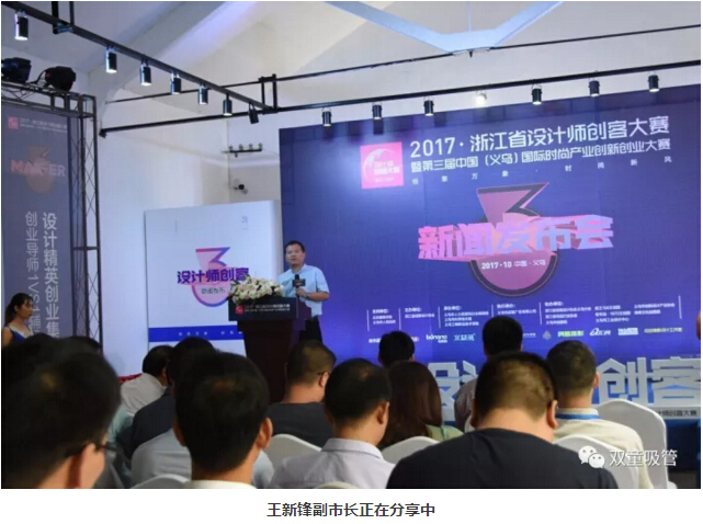 10月10日,由浙江省創(chuàng)意設(shè)計(jì)協(xié)會(huì)主辦的2017浙江省設(shè)計(jì)師創(chuàng)客大賽暨第三屆中國(guó)(義烏)國(guó)際時(shí)尚產(chǎn)業(yè)創(chuàng)新創(chuàng)業(yè)大賽新聞發(fā)布會(huì)在義烏老車站?1970藝術(shù)中心召開(kāi)!本次大賽以“創(chuàng)意萬(wàn)象,時(shí)尚新風(fēng)”為主題,鼓勵(lì)并推動(dòng)年輕設(shè)計(jì)師創(chuàng)品牌、創(chuàng)企業(yè),運(yùn)用互聯(lián)網(wǎng)思維為傳統(tǒng)行業(yè)發(fā)展提供新的思路和模式!“雙童”樓仲平作為企業(yè)家代表也受邀參與此次活動(dòng),并做了主題分享!