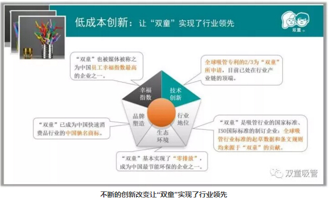 通過(guò)產(chǎn)品研發(fā)、設(shè)備研發(fā)和技術(shù)改造等創(chuàng)新工作,“雙童”逐漸促進(jìn)和推動(dòng)了整個(gè)吸管行業(yè)的發(fā)展,提升了全球吸管行業(yè)整體發(fā)展水平,實(shí)現(xiàn)了行業(yè)領(lǐng)先。
