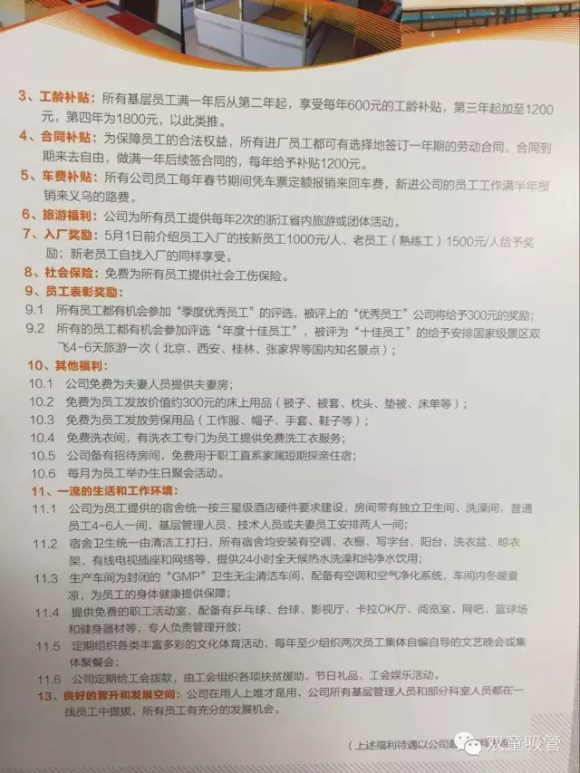 “雙童”招工簡歷的各項福利