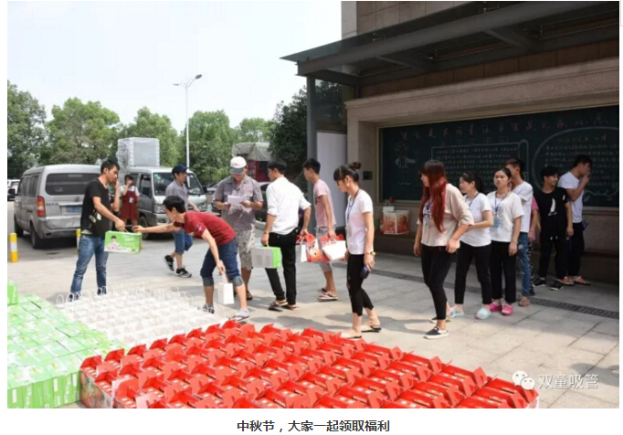 節(jié)假日當然也不能錯過!三八婦女節(jié)、端午節(jié)、中秋節(jié)、春節(jié)……每逢節(jié)假日,也是“雙童”發(fā)放福利的最佳日子了!瞧!員工們拿著禮品滿臉笑容的樣子,也是員工們幸福的體現!
