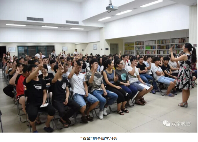 總覺得還少了一些什么?其實,“雙童”員工的福利可不單單體現在物質享受哦!在這里,我們學習文化,營造學習氛圍。在每周一和周三的19-21點,舉辦全體員工的學習會,確保所有員工每月有累計八小時的學習和培訓!無論是掃地阿姨還是看門叔叔,都必須參加全員學習會,提高自身認知水平!同時,設置獎品、紅包、榮譽等激勵員工學習,通過這樣的方式,讓大家真正擁有精神上的提升!這難道不是“雙童”給我們的最大福利嗎?