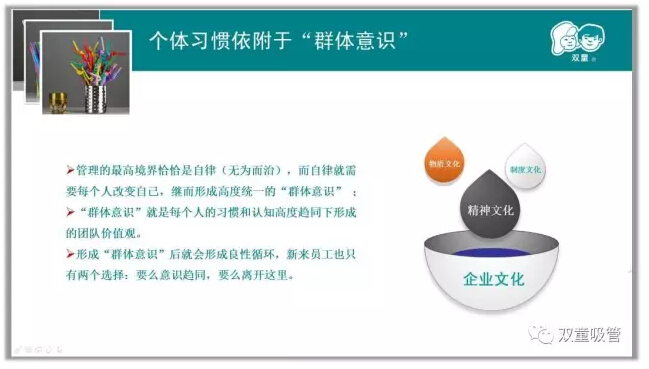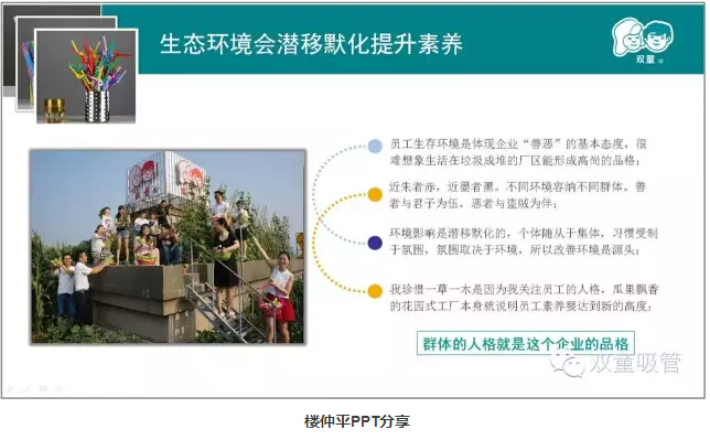 除此之外,屋頂菜園、廠區(qū)的綠化、甚至是隨處可見的鏡框標(biāo)語都在潛移默化地影響著員工,瓜果飄香的花園式工廠本身就說明員工素養(yǎng)要達(dá)到新的高度。通過這樣的方式,員工長時(shí)間自律提升后就形成了自身的行為習(xí)慣,在改善工作生活的同時(shí)形成精細(xì)化管理氛圍。所以,即使沒有明令禁止,“雙童”人也非常自覺不會(huì)去采摘柚子,更不會(huì)破壞廠區(qū)里的一草一木!