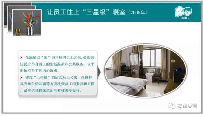 正巧從2006年開始,“雙童”在建廠之初建設(shè)的雨水收集、中水回用等節(jié)能降耗設(shè)施以及創(chuàng)造一流硬件讓員工住三星級寢室、建設(shè)物業(yè)團隊服務(wù)員工、倡導(dǎo)“家文化”解決核心員工家庭生活問題等善待員工的經(jīng)營理念受到了中央、省和市政府的高度關(guān)注,從而帶動大量社會媒體到“雙童”采訪報道。