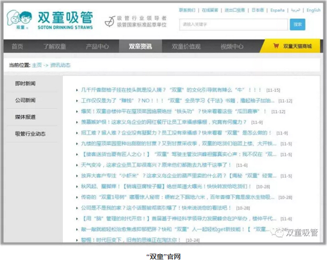 如今,“雙童”專門設(shè)置有5人編制的文宣部門,負(fù)責(zé)運營微博、微信、官方網(wǎng)站等十幾個自媒體應(yīng)用平臺,整體流量和社會關(guān)注度位于中國制造業(yè)前列!