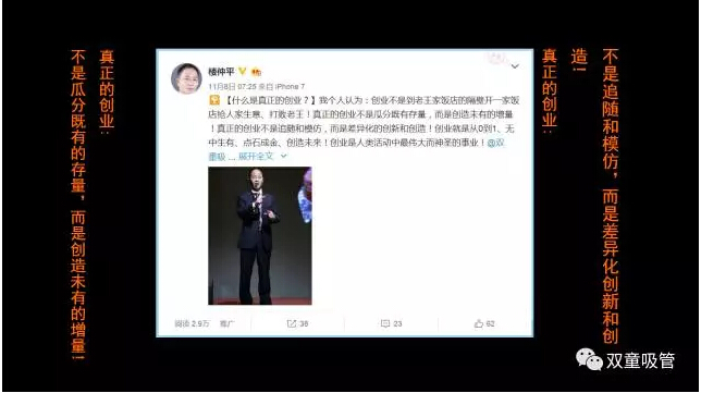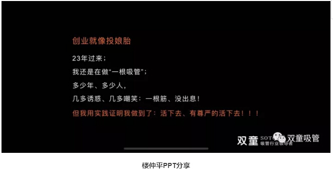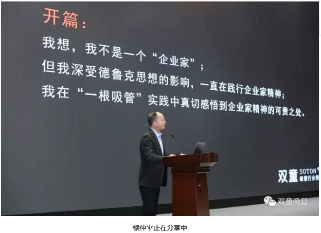 “雙童”樓仲平的演講主題是《一根吸管”的創(chuàng)業(yè)觀》,精彩分享引起了在場創(chuàng)業(yè)者們的高度認(rèn)同。下面,吸管妞就和大家分享精彩的課程內(nèi)容吧!