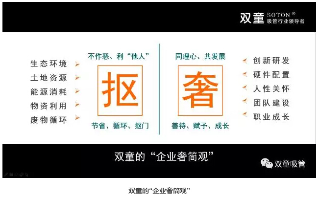 創(chuàng)業(yè)除了需要“堅持觀”外,更需要“責(zé)任觀”。“雙童”樓仲平在經(jīng)營企業(yè)的過程中深刻理解“摳”與“奢”的“企業(yè)奢簡觀”,并深受日本文化和德魯克思想影響,非常重視社會責(zé)任、創(chuàng)新以及企業(yè)家精神的踐行。