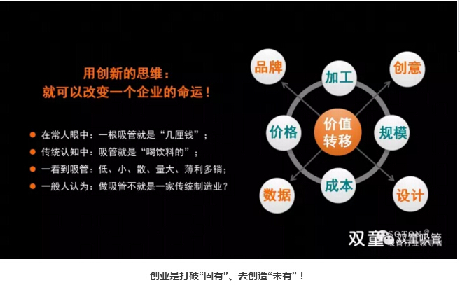在傳統(tǒng)的認(rèn)知當(dāng)中,類似于塑料吸管這樣的產(chǎn)品門檻低,不起眼,是典型的“低、小、散、弱”傳統(tǒng)邊緣產(chǎn)品,很難做品牌。但“雙童”用創(chuàng)新的思維不斷努力,硬是把一個看似不可能的產(chǎn)品創(chuàng)造出大品牌,打破了吸管這類產(chǎn)品不能做品牌的傳統(tǒng)偏見!