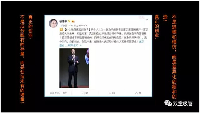 今天,吸管妞就通過幾個(gè)關(guān)鍵詞和大家分享樓仲平影響創(chuàng)業(yè)者們的部分課件內(nèi)容吧!