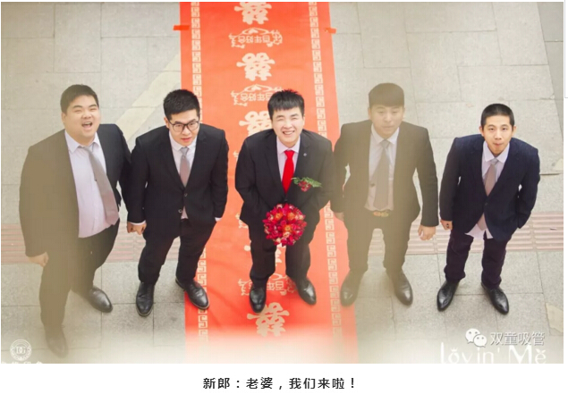 12月23日早上8點(diǎn)36分,新郎接親禮車就到達(dá)了新娘家樓下。新郎滿臉笑容,在樓下吶喊:老婆,我們來了!