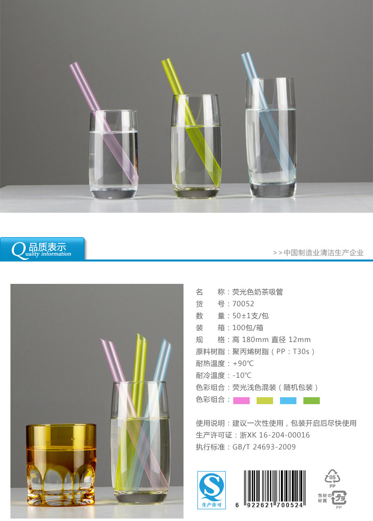 70052雙童50支熒光色珍珠奶茶吸管